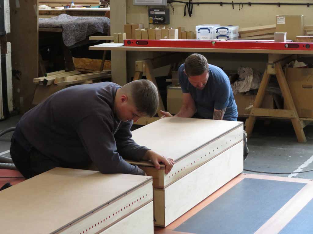 Guards' Michael Clough and Ben Bates (apprentice) putting soundboards on the main base frame (6)
