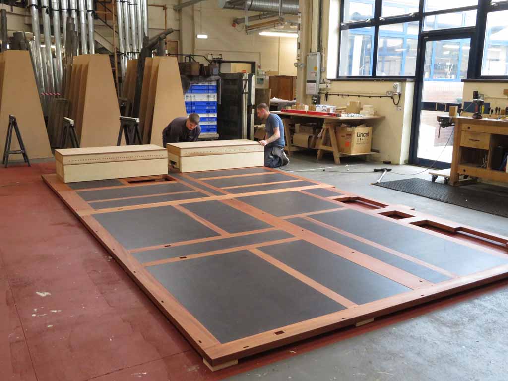 Guards' Michael Clough and Ben Bates (apprentice) putting soundboards on the main base frame (8)