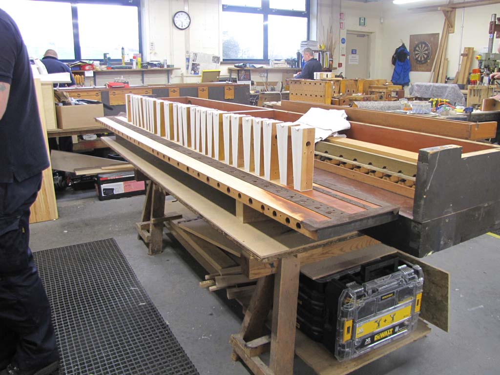 Father Willis 1898, 4 manuals 64 stops, restored by H & H in 1960 & 1998. Dismantle, store and protect the organ during roofing repairs. Repair work to be undertaken on the mechanism of the triforium organ while it is dismantled to allow the roof to be repaired. Overhaul of slider soundboards, drawstop actions and the main motors re-leathered. The actions for the Double Open Wood 32ft to be overhauled and re-leathered. Two new wind control reservoirs and valves to be installed and the wind trunking layout will be revised. Two wind stabilising concussions to be re-leathered. Support for the Swell Vox Humana pipes. Repair to pipework as required. The Great reed soundboard to be repaired.
