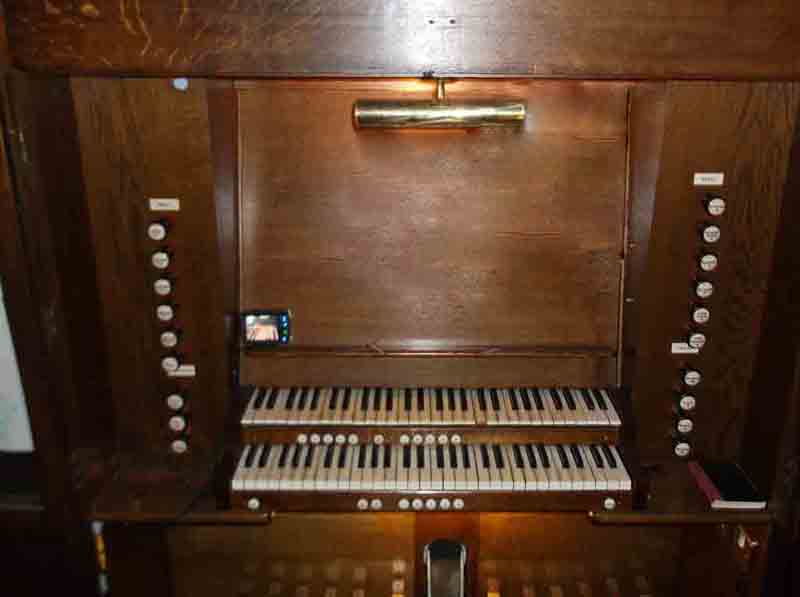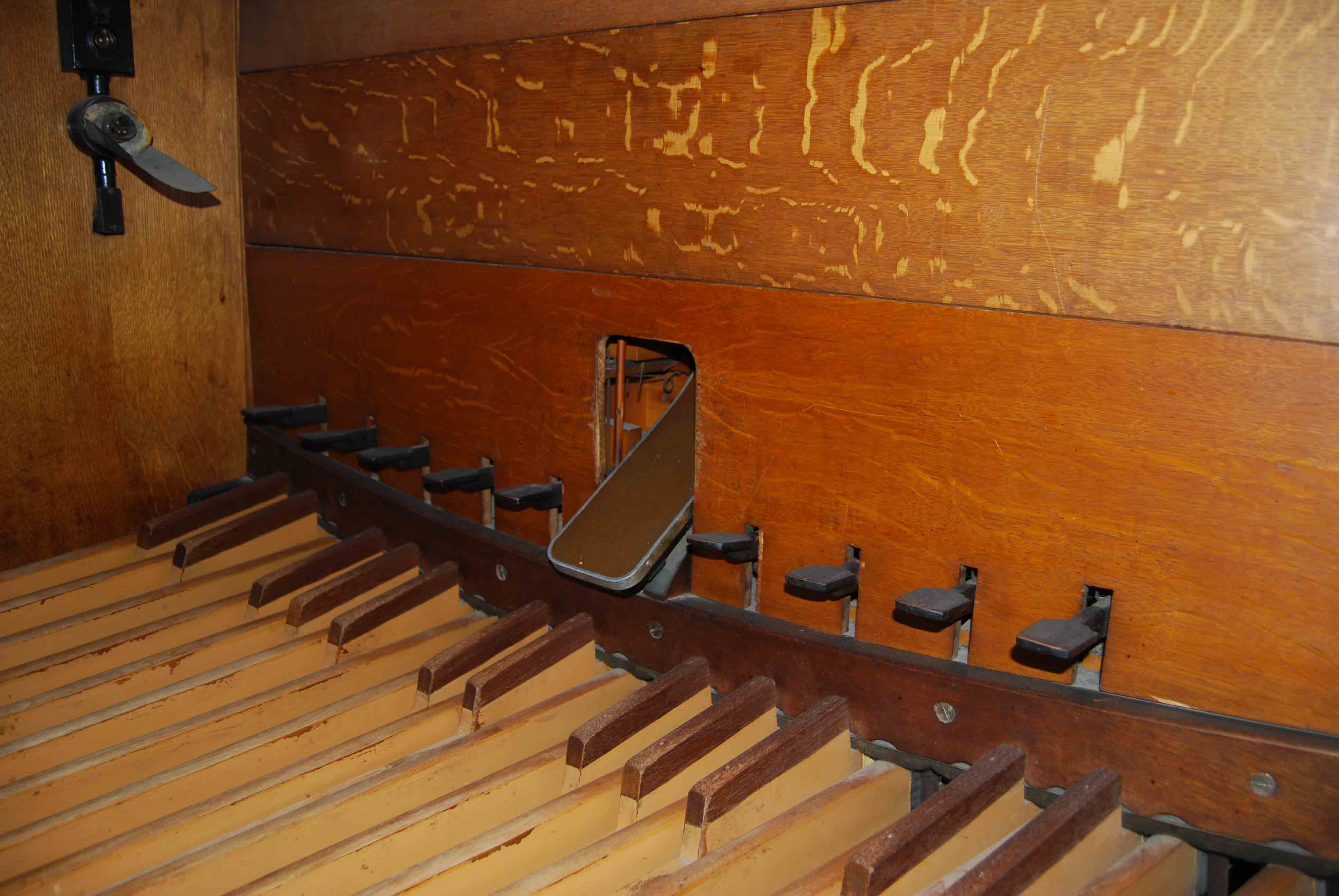 The manual keyboards overhauled and fitted with new contacts. New piston units and drawstop solenoids. The pedalboard overhauled and fitted with new contacts, and new foot pistons. The woodwork in the playing area and external casework will be refurbished.