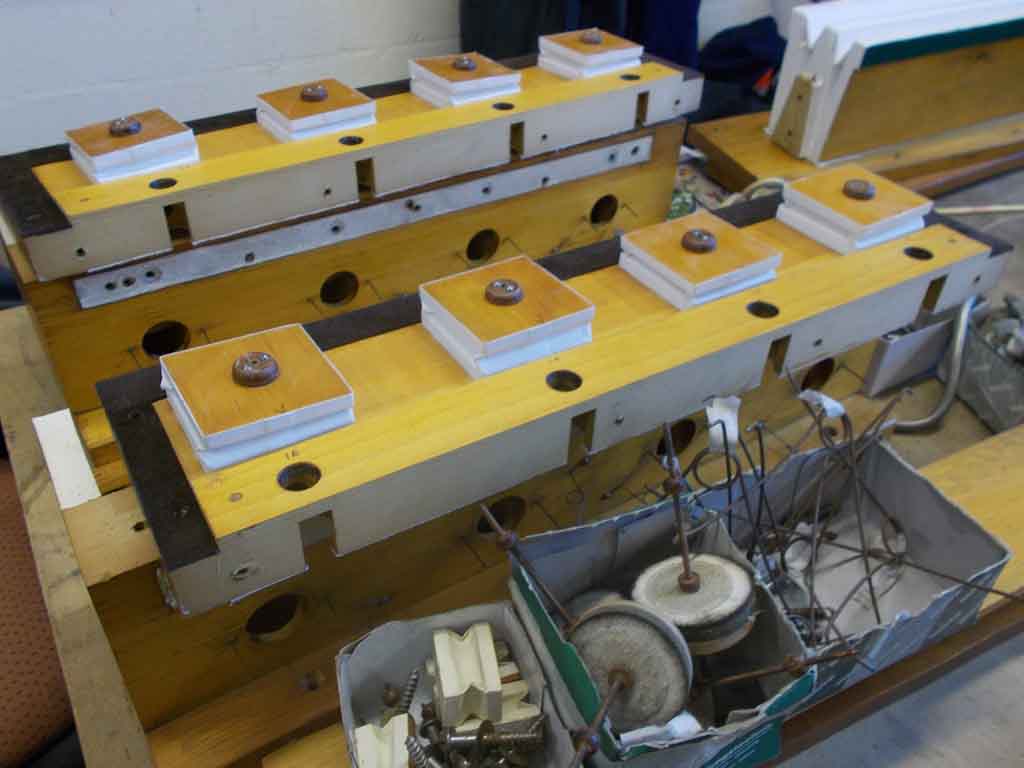 The Choir, Great and Swell slider soundboards cleaned and repaired in the church. A new five stop slider soundboard provided for the revised Pedal organ.